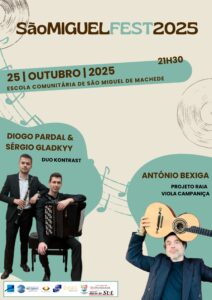 Maio 29, 2025A Suão – Associação de Desenvolvimento Comunitário irá promover, no próximo dia 25 de outubro, pelas 21h30, na sua sede, a 2ªedição do São Miguel Fest, um festival dedicado à música clássica e erudita.